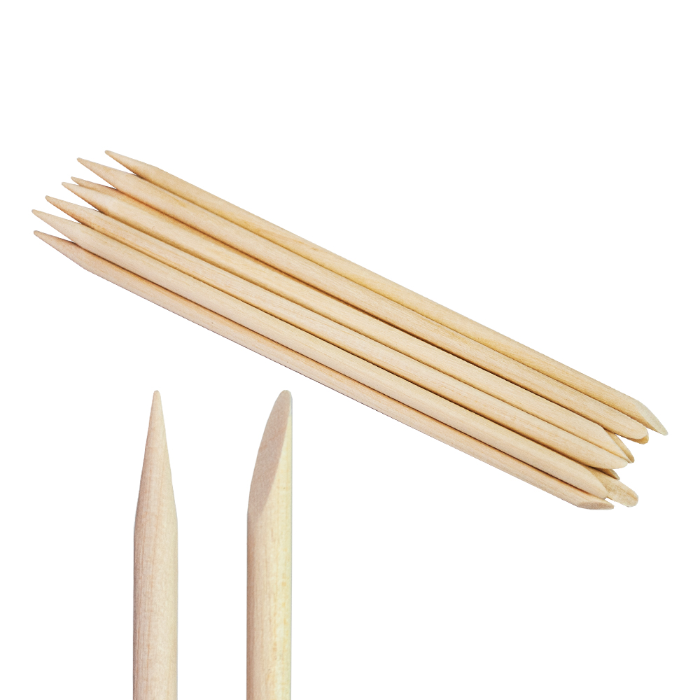 Апельсинові палички - необхідний аксесуар майстра манікюру. Дерев'яні палички застосовуються для безпечного відсунення кутикули, очищення птеригію, зняття гель-лаку, видалення бруду, а також при моделюванні і дизайні нігтів. Довжина паличок 12 см, в наборі 10 шт.