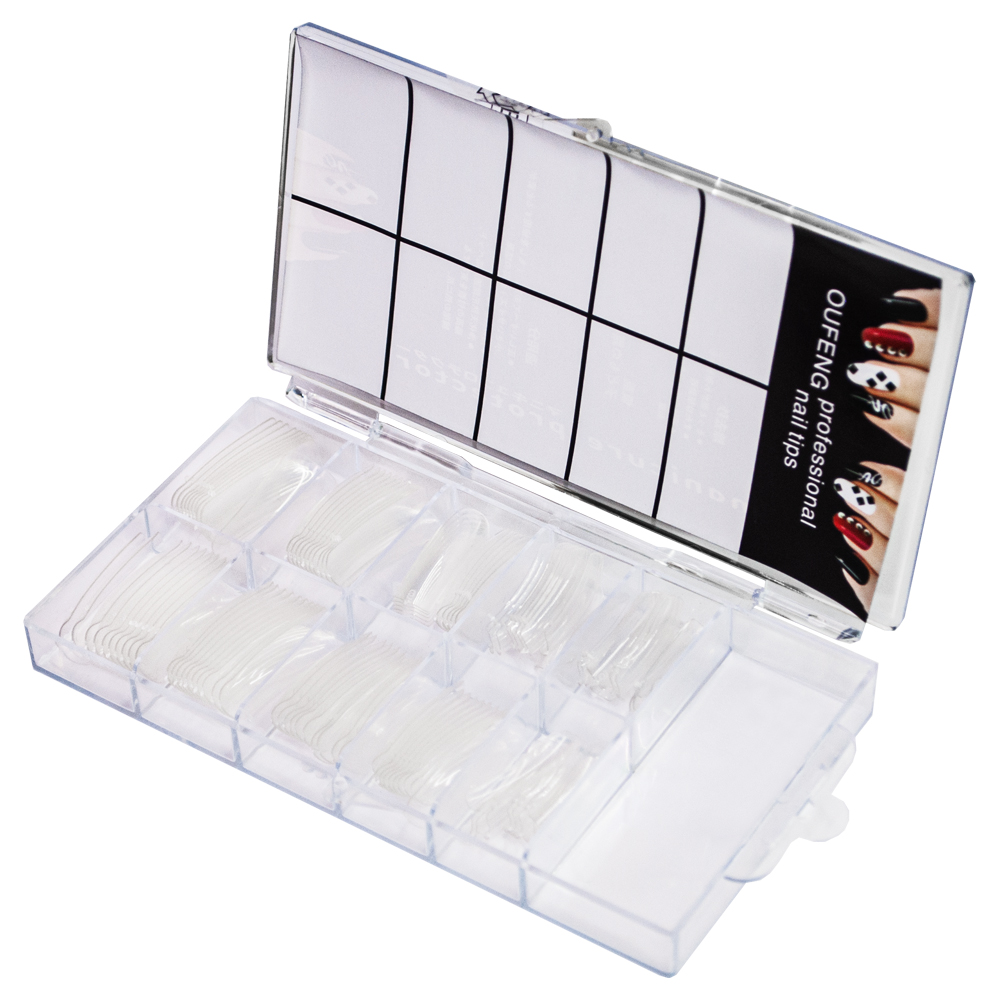 Нарощування полігелем на верхні форми — це швидко та легко! Ці тіпси підходять для багаторазового використання, дозволяють наростити нігті будь-якої довжини та форми. На форми нанесено зручну розмітку, вони упаковані в твердий кейс. Набір містить 10 розмірів по 10 тіпс кожного розміру = 100 шт.