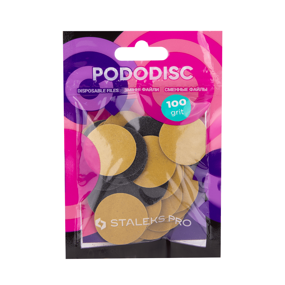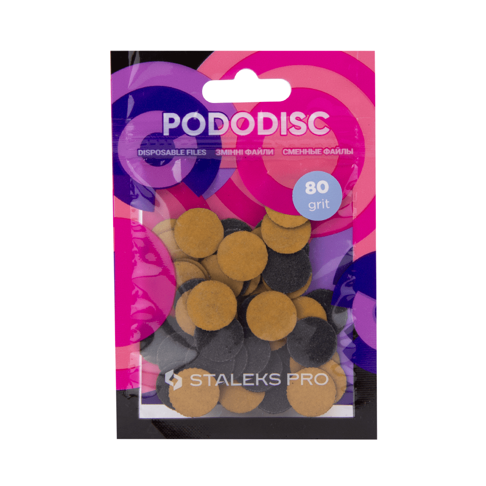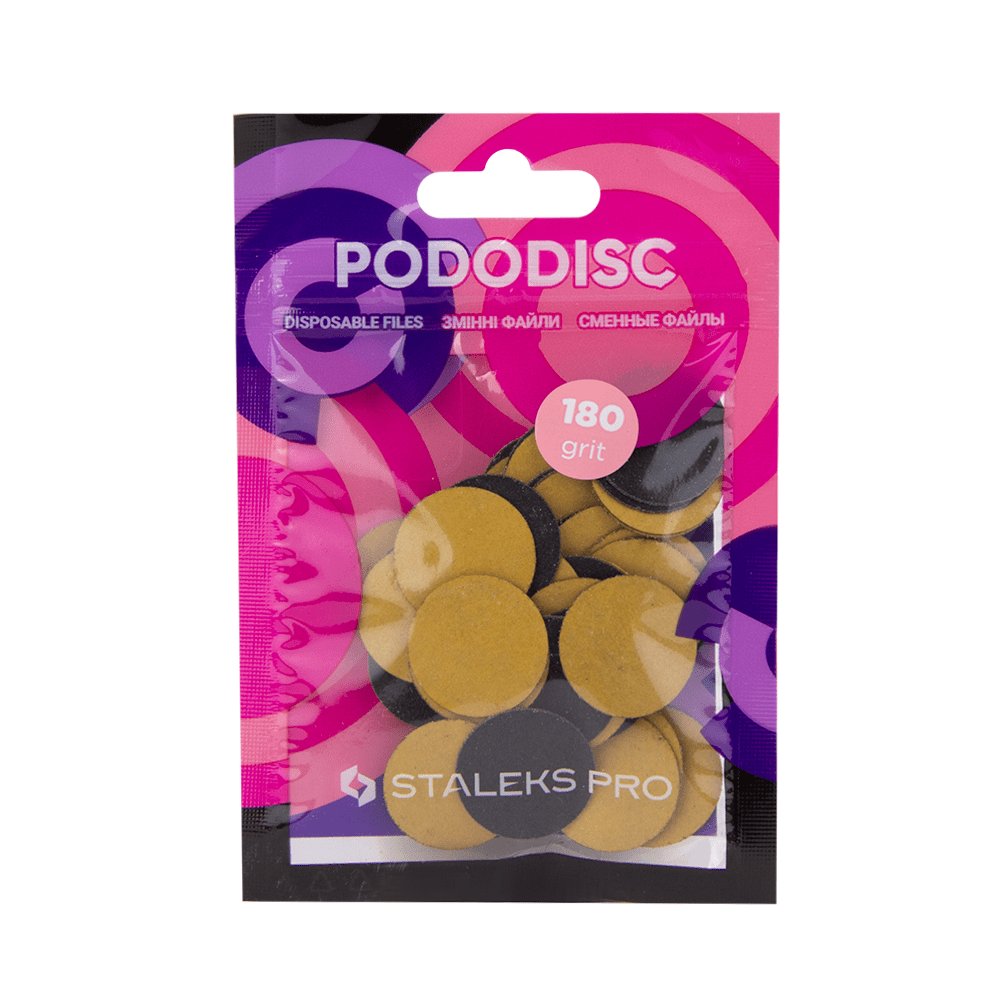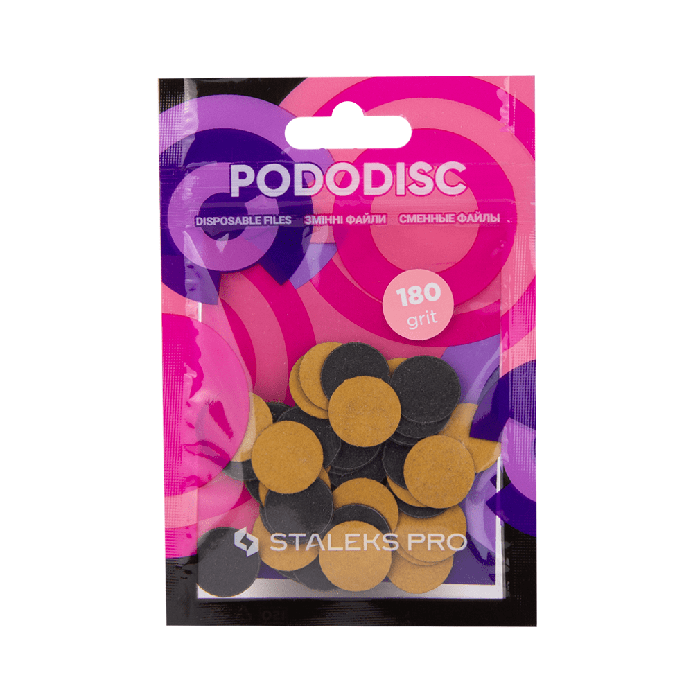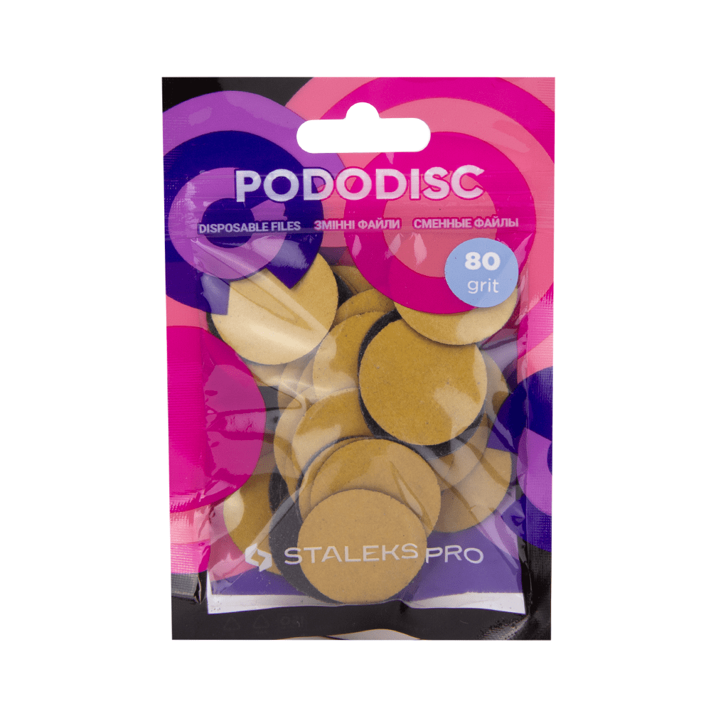 Одноразові абразиви для педикюрного диска роблять сервіс гігієнічним і безпечним для клієнта, не змушуючи з метою економії купувати дешеві багаторазові диски, які значно поступаються якістю обробки. Pododisc Staleks Pro 80 грит — змінні наклейки з абразивом 80 грит, які дозволяють педикюрному диску одночасно обробити велику площу огрубілої шкіри. Жорстка гритність призначена для зняття значної товщини рогових нашарувань. Накладки надійно кріпляться…