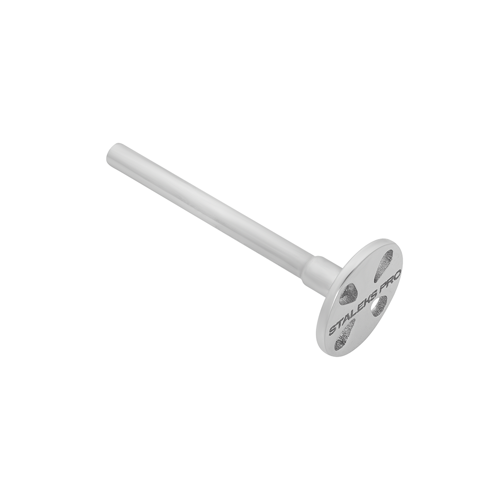 Розмір: M, діаметр 20 мм Педикюрний диск Staleks PRO - це насадка для фрезера, на яку кріпляться змінні абразивні файли. Основа виготовлена з медичної сталі, краї диску відполіровані. Можна використовувати одноразові файли-наклейки різної абразивності. Насадка-основа діаметром 20 мм універсальна - підходить для видалення огрубілостей і натоптишів як на великих ділянках стоп, так і в важкодоступних місцях.
