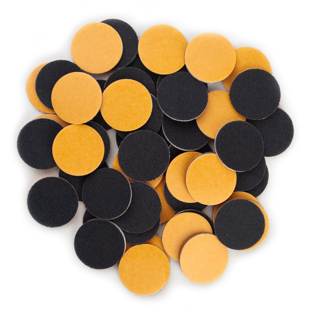 Кількість файлів у наборі: 50 шт Абразив: 240 гріт - дуже дрібний, м'який Діаметр: 25 мм Набір змінних абразивних файлів для фрезерної машинки. За рахунок спеціальної клейкої основи, наждакові наклейки не зміщуються і не відклеюються від педикюрного диску під час виконання процедури, при цьому легко знімаються після використання. Змінні файли виготовлені з водостійких матеріалів і можуть застосовуватися в усіх видах педикюру.