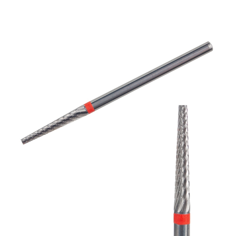Фреза конус виробництва KIMI (Корея) — фреза найвищої якості, виготовлена з карбіду вольфраму, який в 4 рази твердіший за титан і в 5 разів міцніше сталі. Насадка використовується для роботи з нігтями, нарощеними штучними матеріалами, такими як полігель, гель, акрил. За допомогою твердосплавної фрези конус можна випилювати акру знизу, причому для загострених форм або “клюющих” нігтей це можливо зробити саме цією насадкою. Конусна форма дозволяє зводити нанівець матеріал в зоні кутикули при верхньому опилі, а також випилювати натуральный ніготь при корекції та ремонтах. За рахунок м’якого абразиву, насадка практично не залишає слідів опилу, що спрощує подальшу шліфовку.