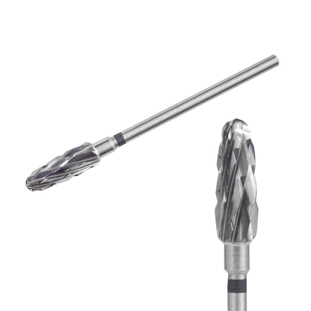 Фреза конус виробництва KIMI (Корея) — фреза найвищої якості, яка виготовлена з карбіду вольфраму, в 4 рази твердішого за титан і в 5 разів міцніше сталі. Насадка застосовується для роботи з твердими штучними матеріалами, такими, як гель або акрил. Для майстрів з достатнім рівнем кваліфікації може бути рекомендована і для зняття гель-лаку з нігтів, які ущільнені базой або штучним матеріалом, оскільки має максимально жорстку абразивність. При нарощуванні і корекції нігтів за допомогою твердосплавної фрези конус можна випилювати акру знизу або виконувати верхній обпил штучного матеріалу, при цьому конусна форма дозволяє зводити нанівець матеріал в зоні кутикули. Груба насічка значно пришвидшує і спрощує процес обпилу твердих материалів.
