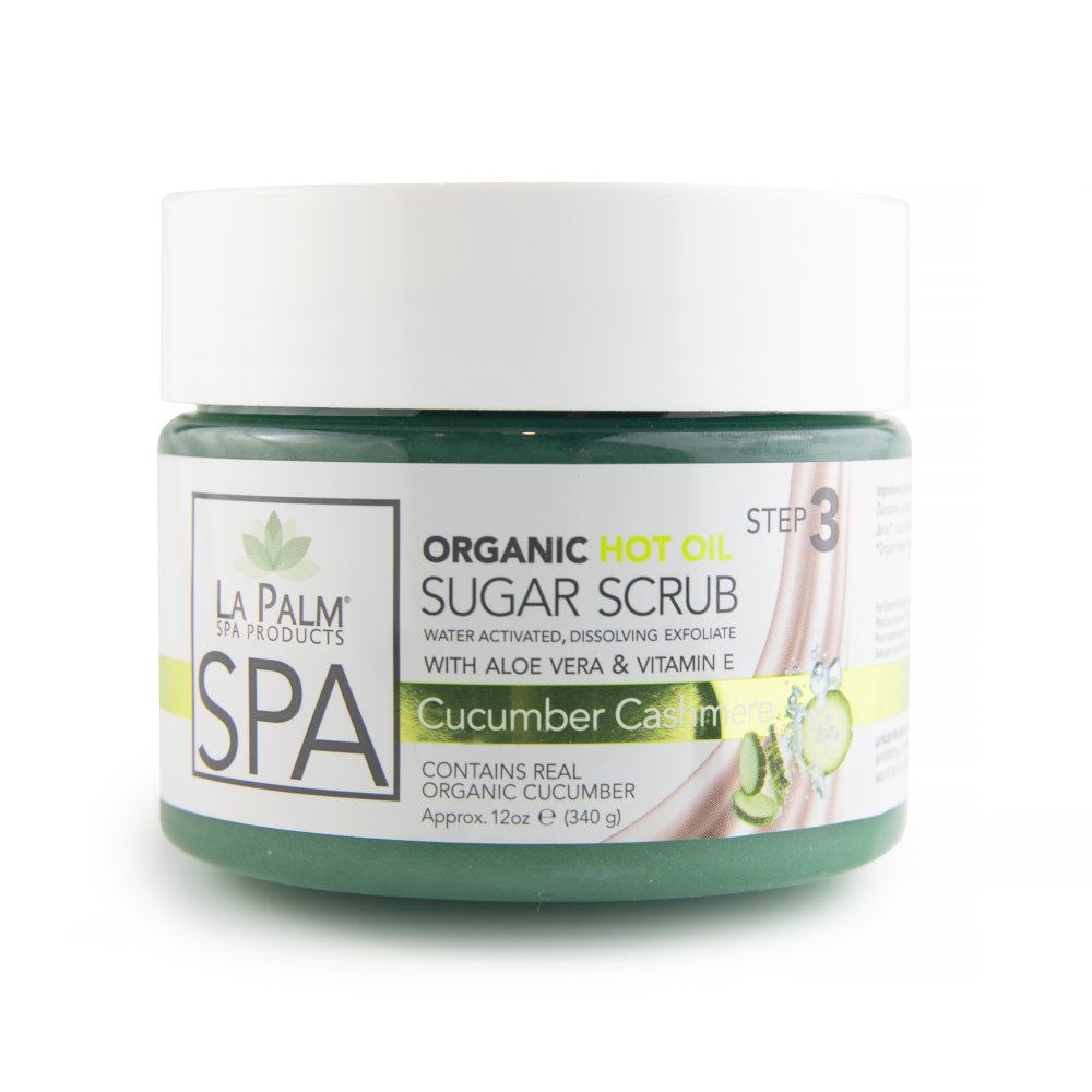 Цукрово-олійний скраб La Palm Огірковий кашемір має медову консистенцію. Він легко наноситься, рівномірно розподіляється по поверхні шкіри. Цей скраб швидко і м’яко видаляє роговий шар епідермісу, глибоко очищає шкіру. Гель алое вера, що входить до складу скрабу, живить і зволожує шкіру, а вітамін Е стимулює процес регенерації клітин. Результат – ніжна шовковиста шкіра всього за пару хвилин!