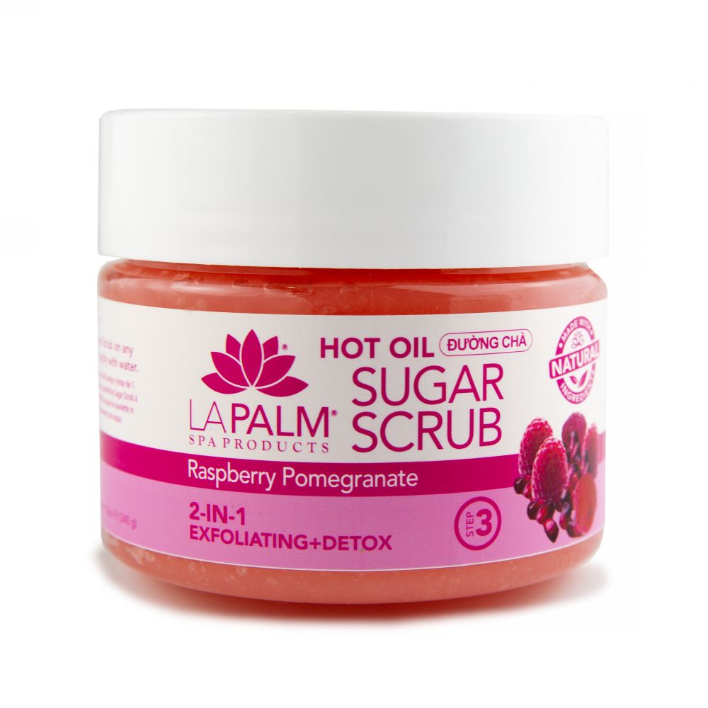 Цукрово-олійний скраб La Palm Малина і гранат має медову консистенцію. Він легко наноситься, рівномірно розподіляється по поверхні шкіри. Цей скраб швидко і м’яко видаляє роговий шар епідермісу, глибоко очищає шкіру. Гель алое вера, що входить до складу живить і зволожує шкіру, а вітамін Е стимулює процес регенерації клітин. Результат – ніжна шовковиста шкіра всього за пару хвилин!