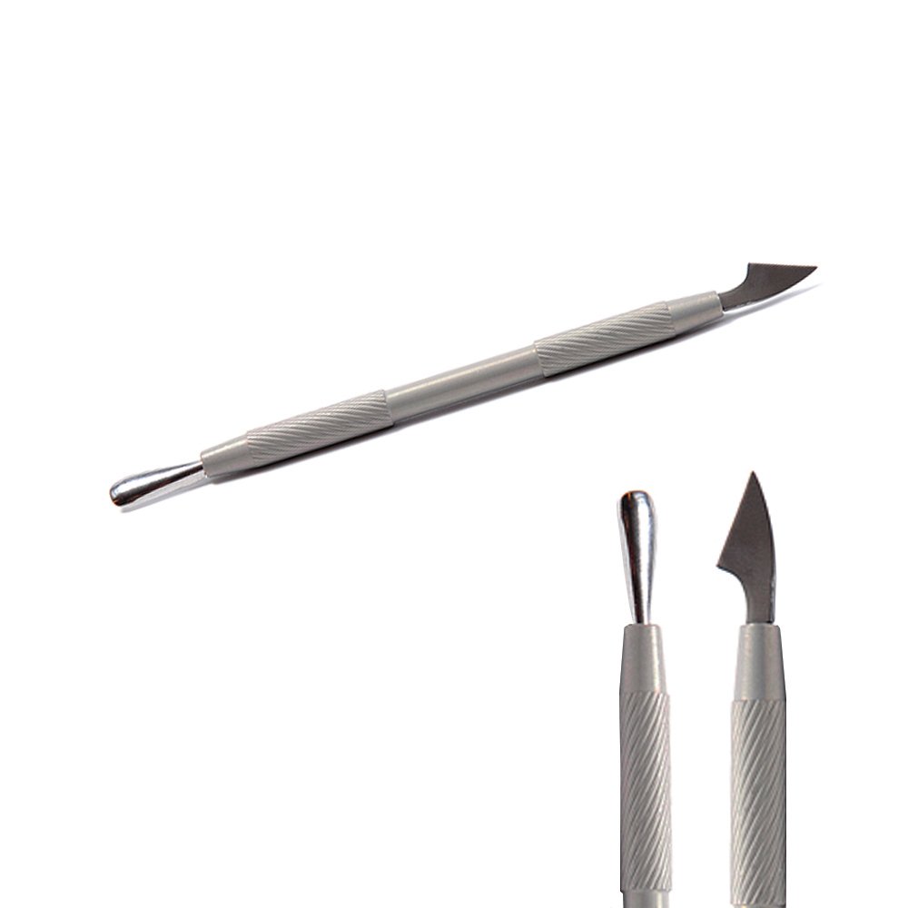 Топірець дбайливо видаляє птеригій з нігтьової пластини, а також допомагає очистити піднігтьову зону. Ручка інструменту має рельєфну поверхню, що дає змогу надійно зафіксувати лопатку в руці майстра.