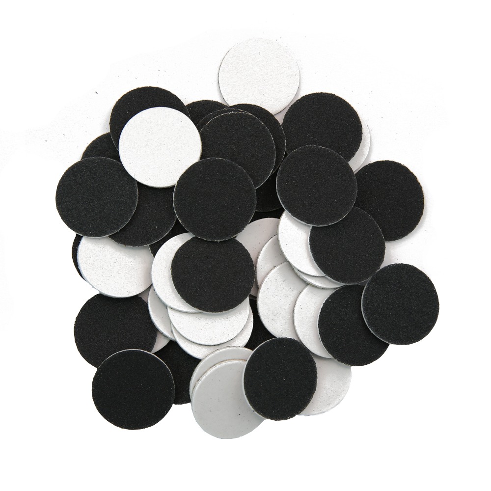 • Сменные файлы для педикюрного диска на тонкой спонжевой основе толщиной 1 мм. Диаметр: 15 мм Абразив: 240 грит, мелкий, мягкий Количество файлов в наборе: 50 шт