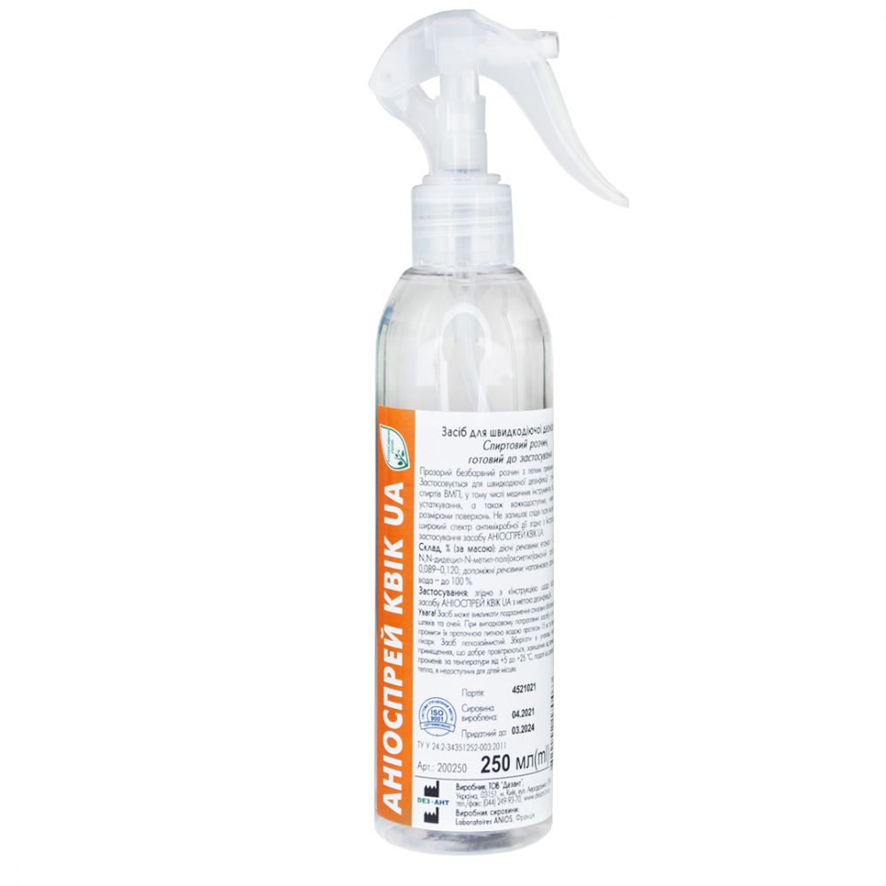 Готовое к применению быстродействующее средство для обработки инструмента и поверхностей. Аниоспрей Квик обладает широким спектром действия: бактерицидным, туберкулоцидным, спороцидным, фунгицидным, вирулицидным, в т.ч. по отношению к возбудителям вирусных гепатитов А, В и С, ВИЧ-инфекции, вирусов герпеса тип 1, гриппа H1N1, аденовирусов, ротавирусов и др.