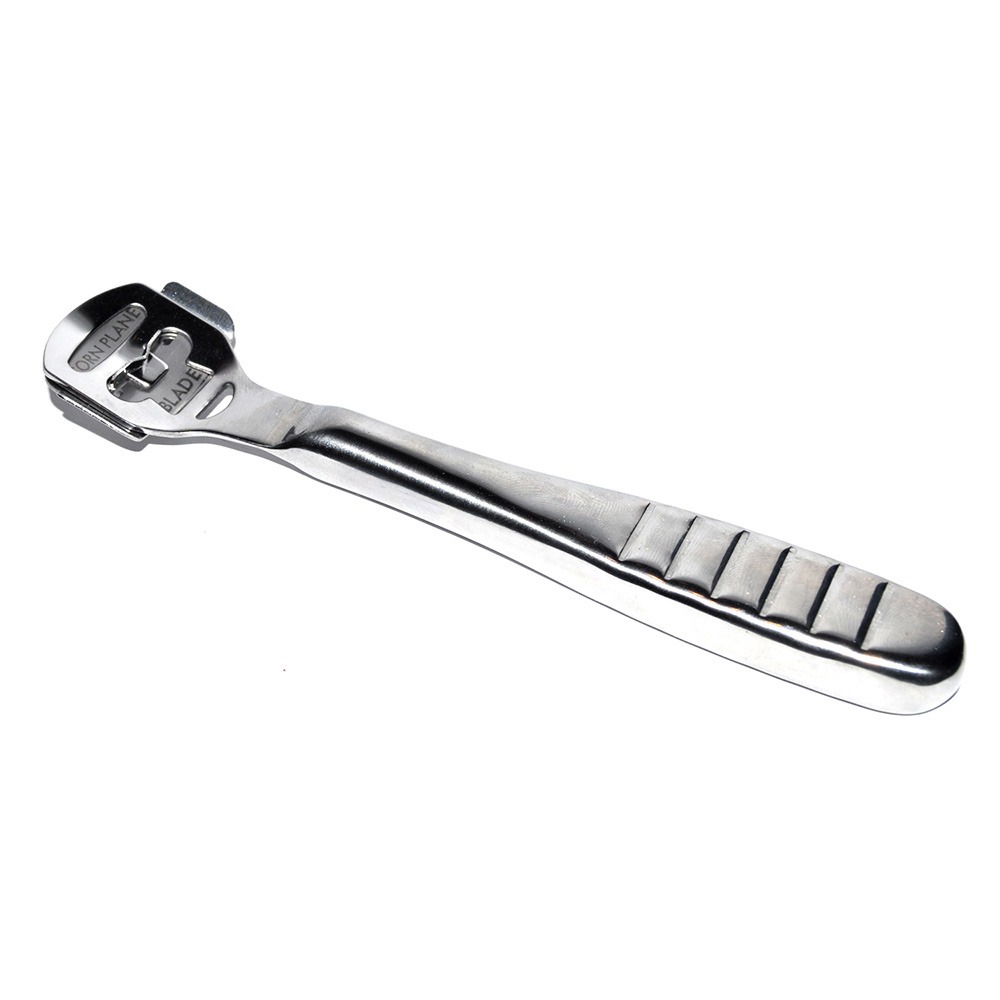 Профессиональный станок для классического обрезного педикюра изготовлен из медицинской нержавеющей стали. Особая форма головки станка позволяет аккуратно и безопасно обрабатывать мозоли, натоптыши и другие участки огрубевшей кожи. Замена лезвия происходит легко, одним движением.