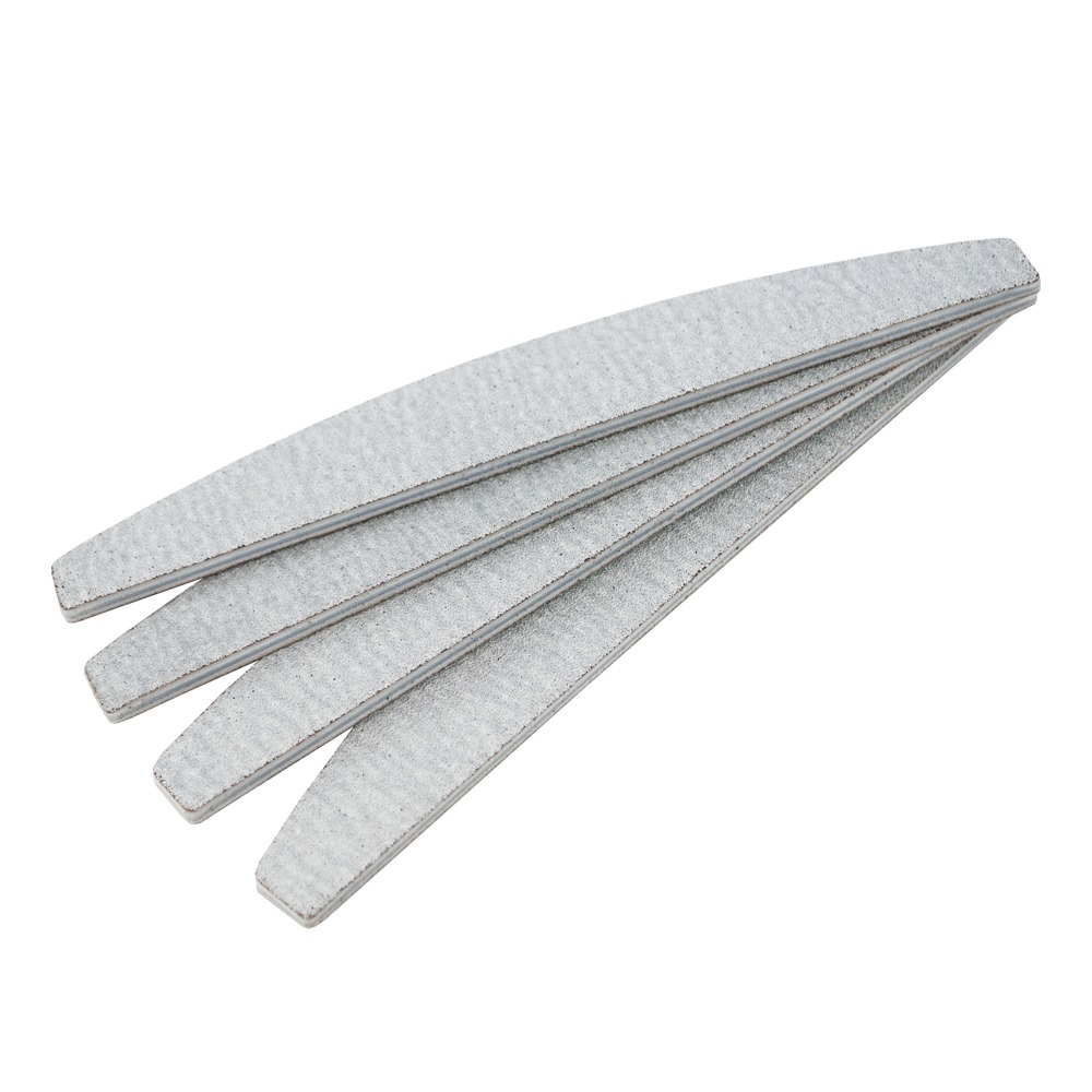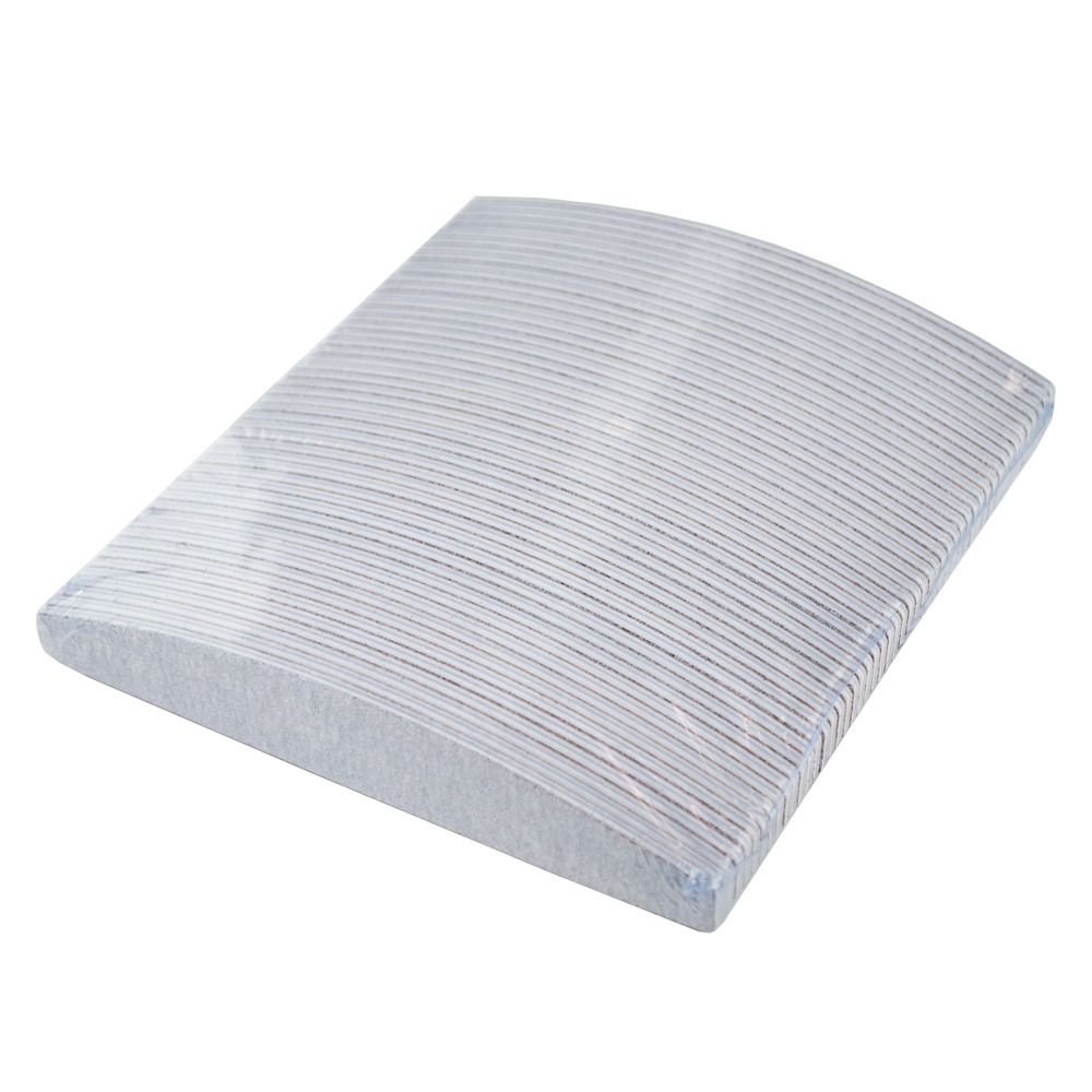 Набор 50 шт, цена 1 шт в наборе: 15.30 грн Популярная и любимая многими мастерами маникюра пилка для ногтей в форме купола. На полимерную основу толщиной 4 мм с одной стороны нанесен довольно грубый абразив 100 грит, с другой – 180 грит (мельче среднего), что делает пилку универсальным инструментом в маникюре, педикюре, работе с гель-лаком и наращивании ногтей.