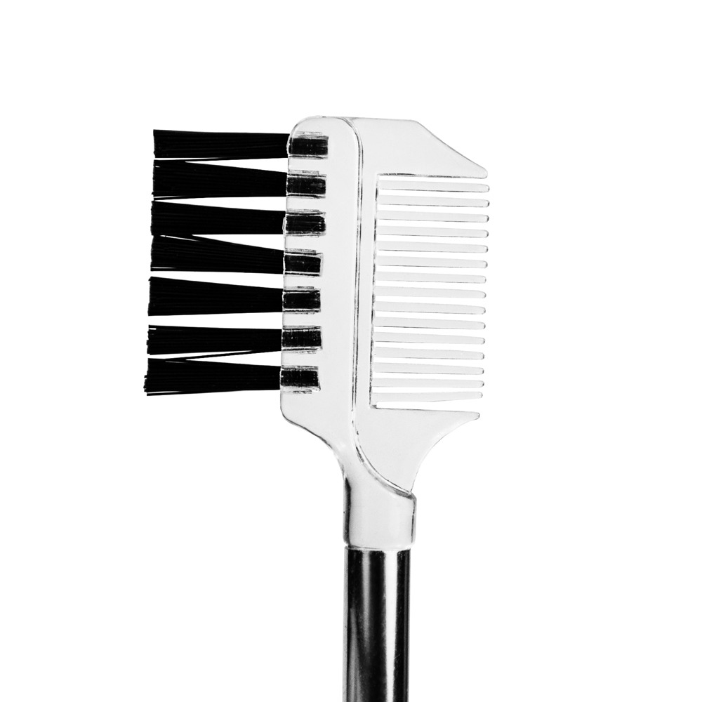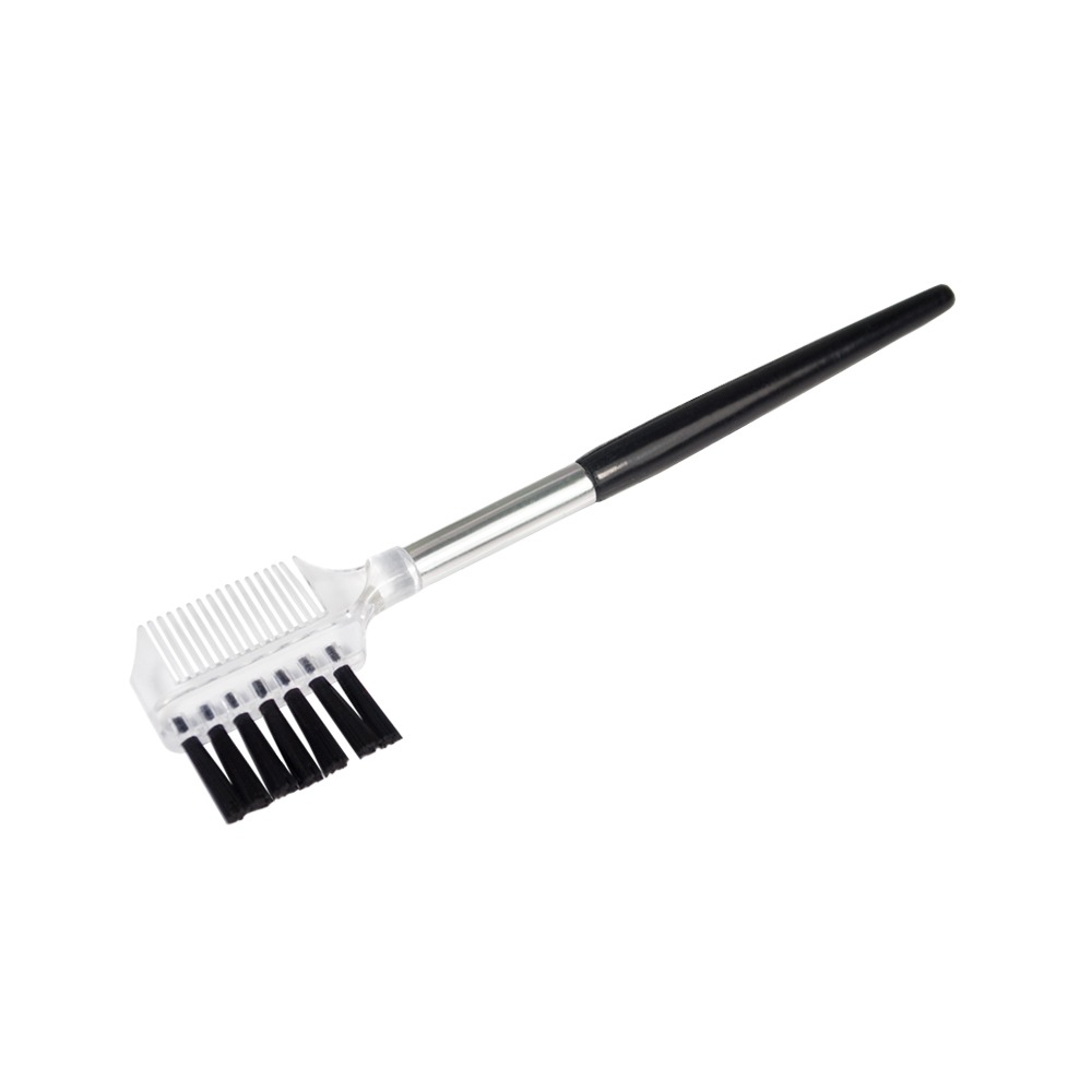 Щеточка для разделения ресниц на отдельные волоски до и во время процедуры. Этой щеточкой также можно разделять слипшиеся от клея волоски и удалять излишки клея. Вторая сторона щетки является расческой для бровей.